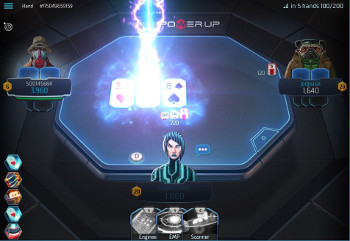 The winner of the hand is still the one with the best five-card hand or the lone person who doesn’t fold, just like in any other Hold’em game. It is entirely possible to play a regular Hold’em hand in Power Up without using Power cards, but that wouldn’t be fun, would it?